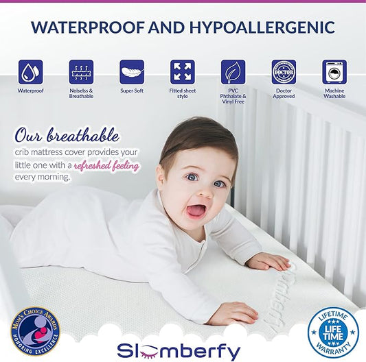 Bamboo Crib Mattress Protector by Slumberfy, Waterproof and Hypoallergenic Mattress Protector for Babies and Toddlers, Made of Bamboo Material, Mom's Choice Award Winner-29x52x6 inches