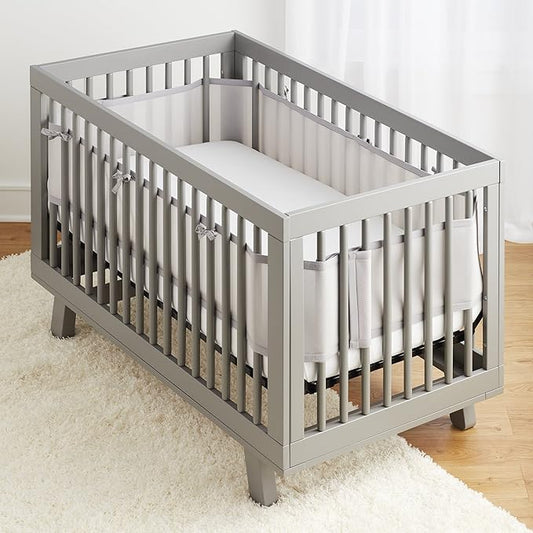 BreathableBaby Breathable Mesh Liner for Full-Size Cribs, Classic 3mm Mesh, Gray (Size 4FS Covers 3 or 4 Sides)