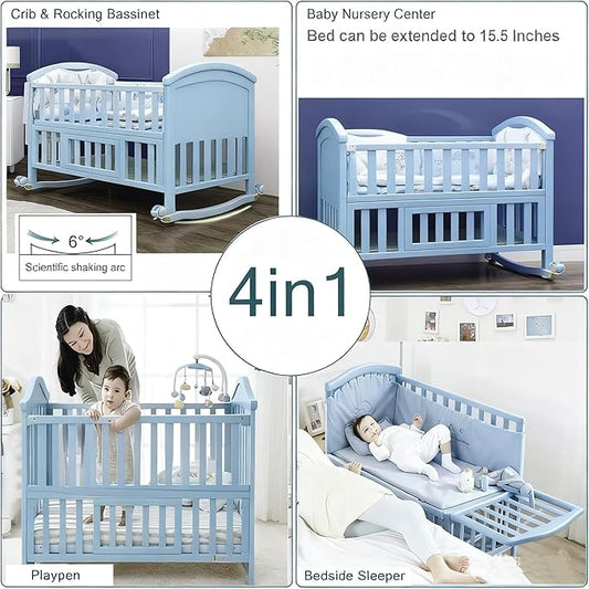 Portable Mini Baby Crib 4 in 1 Convertible with Memory Foam Mattress(38" by24) Included,cunas para Bebes 2025 Small Crib with Foldable Storage Baby Playpen Bedside Sleeper Beds(Natural Wood)