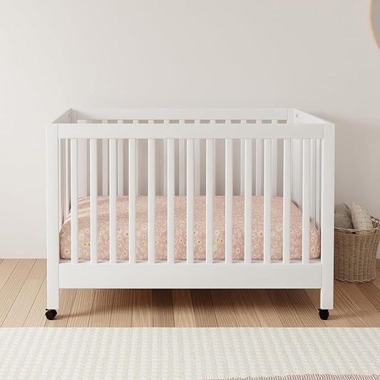 Babyletto Origami Mini Portable Crib Folding with Wheels in White, 2 Adjustable Mattress Positions, Greenguard Gold Certified