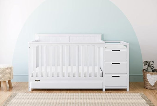 Graco Hadley All-in-One Convertible Crib & Changer (White) – GREENGUARD Gold Certified, Fits Standard Crib Mattress, Converts to Toddler Bed and Full Bed, 4 Adjustable Mattress Heights