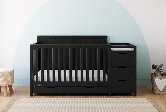 Graco Hadley All-in-One Convertible Crib & Changer (Black) – GREENGUARD Gold Certified, Fits Standard Crib Mattress, Converts to Toddler Bed and Full Bed, 4 Adjustable Mattress Heights
