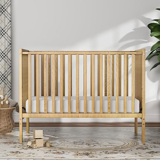 Baby Crib 5-in-1 Convertible, Wood Full Size Toddler Bed for Small Baby, Made of Sustainable Natural Pinewood Cribs, Non-Toxic Finish, Simplistic Nursery Furniture (Natural)
