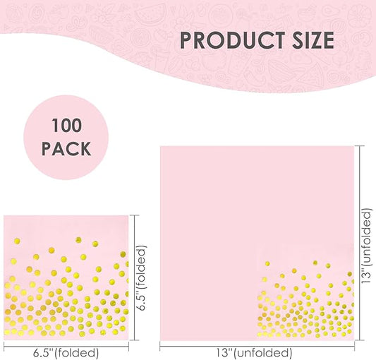 13 x 13 Inches Pink Party Napkins,Pink and Gold Paper Beverage Napkin,100 Pack Disposable Cocktail Napkins,Bar Napkins for Birthday Dinner Anniversary Wedding Party Supplies