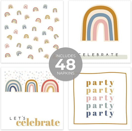 Modern Rainbow Party Beverage Napkins / 48 Colorful Celebrate Cocktail Napkins / 4 Stylish Gender Neutral Designs / 4 3/4" x 4 3/4" Birthday Baby Shower 4 3/4" x 4 3/4" Napkin Set/Made In The USA