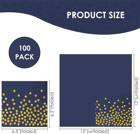 13 x 13 Inches Blue Party Napkins,Blue and Gold Beverage Napkin,100PCS Gold Dot Cocktail Paper Napkins for Birthday Wedding Graduation 2025