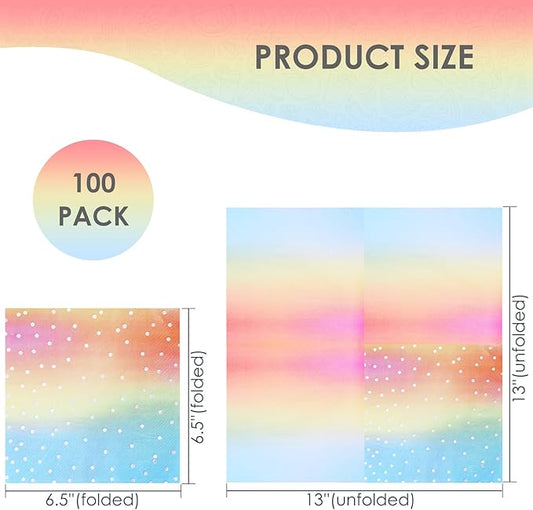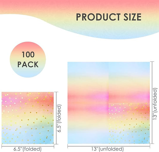 13X13 Inch Pink and Gold Napkins,Pink Rainbow Disposable Cocktail Paper Napkins for Women Birthday Wedding Rainbow Party Supplies
