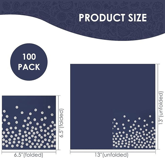 13 x 13 Inches Blue Party Napkins,Blue and Silver Beverage Napkin,100PCS Silver Dot Cocktail Paper Napkins for Birthday Wedding Graduation 2023