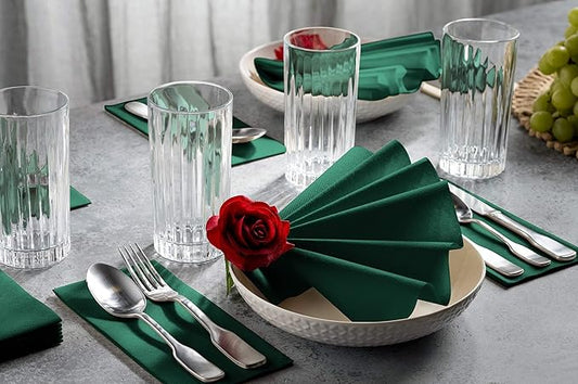 100 Linen-Feel Colored Paper Napkins - Decorative Cloth-Like Green Dinner Napkins - Soft And Absorbent. For Christmas, Kitchen, Party, Wedding, Bathroom Or Any Occasion. (Pack of 100)