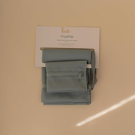 mushie Water Resistant Wet Bags | Large & Small Reusable Storage Bag for Baby Items and Travel | Zippered Pockets with Handle | Machine Washable, Set of 2 (Roman Green)
