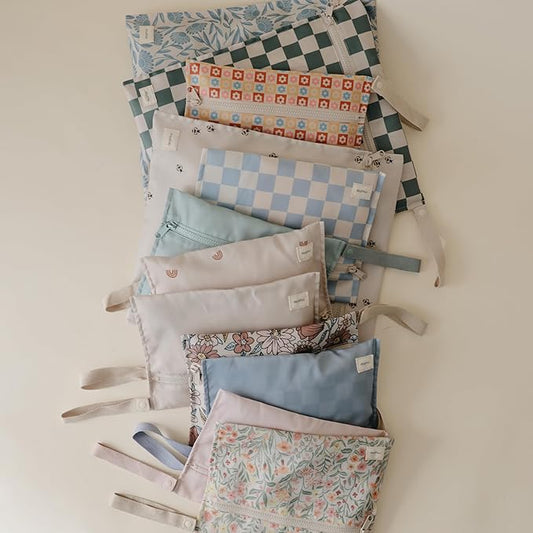 mushie Water Resistant Wet Bags | Large & Small Reusable Storage Bag for Baby Items and Travel | Zippered Pockets with Handle | Machine Washable, Set of 2 (Pastel Blooms)