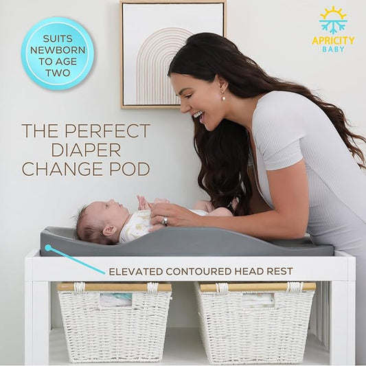 Apricity Baby Changing Pad – Waterproof Wipe-Clean Foam Mat with Raised Sides & Built-in Growth Chart, Extra-Large 31.5″ × 19.7″ – Safe & Comfortable Changing Pad for Newborns to Toddlers (Grey)