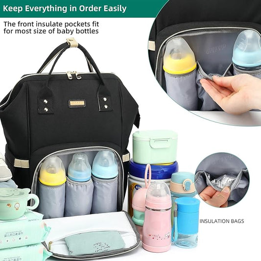 Diaper Bag Backpack,Stylish Baby Diaper Bag,Waterproof Travel Diaper Backpacks Baby Bags with Changing Pad,Stroller Straps,Insulated Pockets (Black)