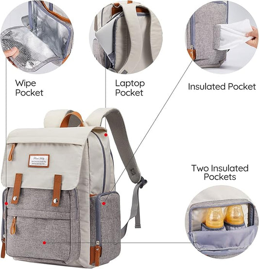 Frank Mully Diaper Bag Backpack Large Multifunction Travel Baby Bag for Mom Dad Cream White