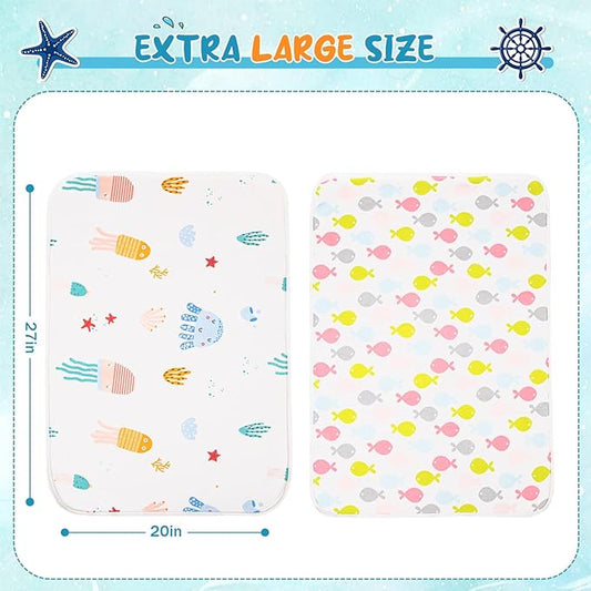 2 Pcs 27x35Inches Waterproof Changing Pads,Reusable Leak Proof Crib Disaper Pads,Portable Unisex Baby Changing Mat for Home&Travel.