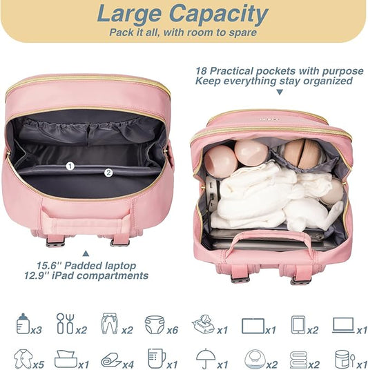 Diaper Bag Backpack,Stylish Baby Diaper Bag,Waterproof Travel Diaper Backpacks Baby Bags with Changing Pad,Stroller Straps,Insulated Pockets (Pink)