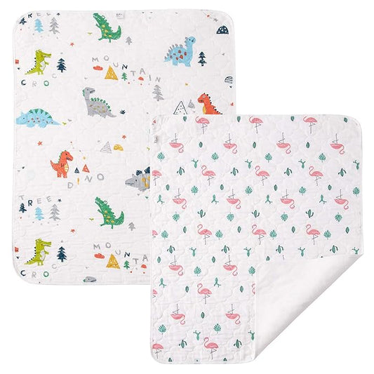 2 Pcs 12x20Inches Waterproof Changing Pads for 0-6 Months Baby,Cute Leak Proof Crib Disaper Pads,Portable Unisex Baby Changing Mat for Home&Travel. (Dinosaur)