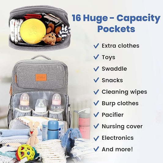 PILLANI Baby Diaper Bag Backpack - Large Bag for Boys & Girls, Waterproof Diaper Backpack - Travel Diaper Bags w/Changing Pad, Baby Registry Search & Shower Gifts - Essentials Must Haves Newborn Stuff