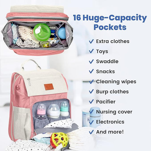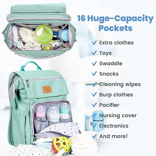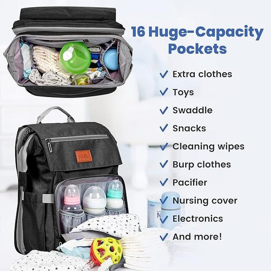 Baby Diaper Bag Backpack with Changing Station, Large Capacity, USB Port, Pacifier Case, Mosquito Net & Wipes Bag Stylish Travel Bag for Boys, Girls, Moms & Dads, Shower Gift