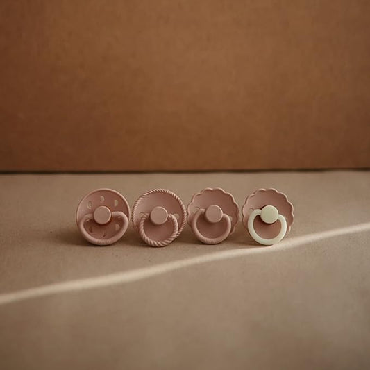 FRIGG Daisy Natural Rubber Baby Pacifier | Made in Denmark | BPA-Free (Baby Pink/Soft Lilac, 6-18 Months) 2-Pack