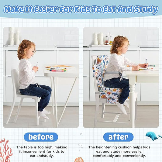Booster Seat for Kitchen Chair, Toddler Booster Seat for Dining Table with Backrest and Safety Buckles, Portable Non-Slip Bottom Toddler Booster seat for Table