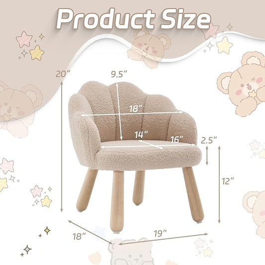 Blissful Diary Toddler Chair Comfy, Foam Kids Chair with Soft Teddy Plush, Toddler Reading Armchair with Cute Arclet Designs- Light Cream