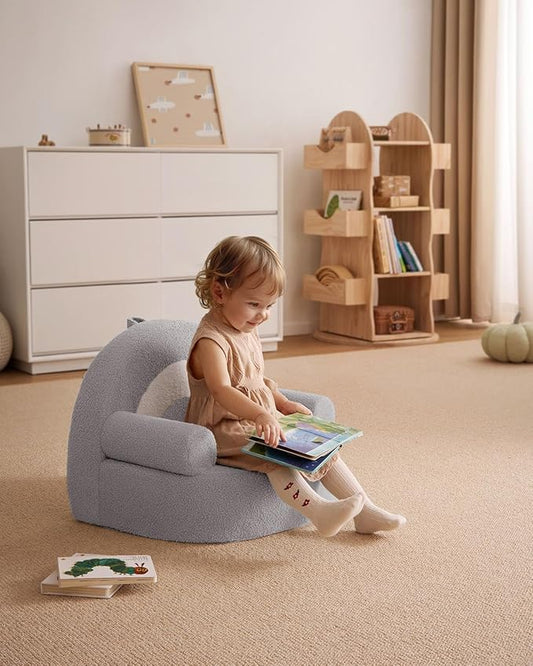 Blissful Diary Toddler Chair Comfy, Foam Kids Chair with Soft Teddy Plush, Toddler Reading Armchair for 1 2 3+ Year Old Girls Boys Baby Birthday Gift, Light Gray Arclet