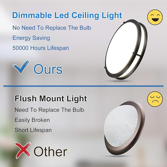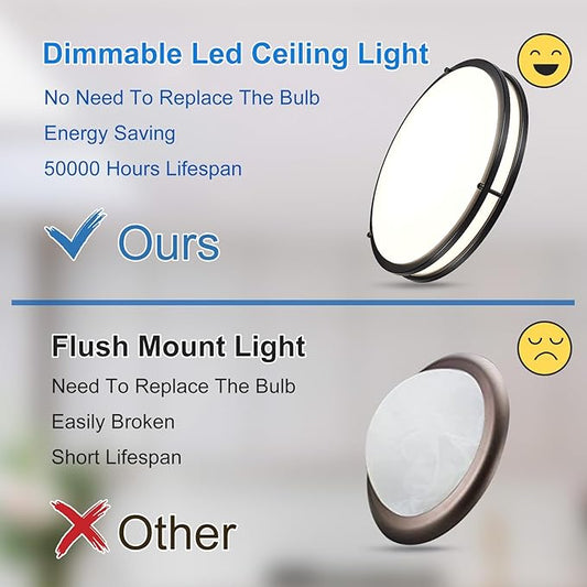 DLLT Flush Mount LED Ceiling Light: 16 Inch 5CCT (3000K-6000K) & Dimmable Ceiling Light Fixtures for Bedroom Hallway - 36W Modern Black Super Bright Kitchen Lighting Fixtures Ceiling