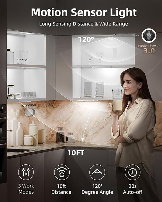8 Inch Under Cabinet Lighting, 3Pack 5CCT Dimmable Closet Lights, Motion Sensor LED Lights of Battery Operated, Rechargeable Under Counter Light for Kitchen, Stairs, Bedroom, Wardrobe