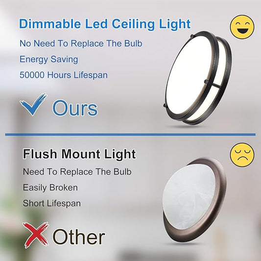 DLLT 2Pack Flush Mount LED Ceiling Light: 13 Inch 5CCT (3000K-6000K) & Dimmable Ceiling Light Fixtures for Bedroom Hallway - 24W Modern Black Super Bright Kitchen Lighting Fixtures Ceiling