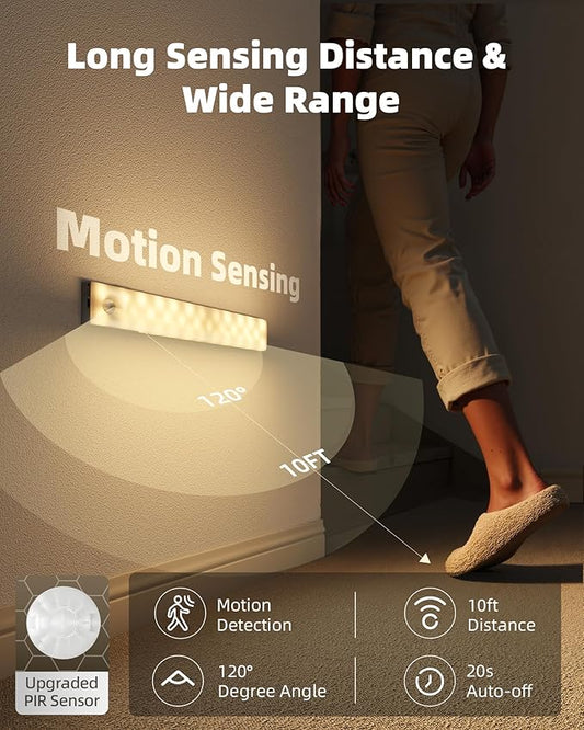 10inch Under Cabinet Lighting, 2 Pack Rechargeable Motion Sensor Light Indoor, 5 Levels Dimmable Magnetic Closet Lights, Wireless Under Counter Lights for Kitchen, Stairs