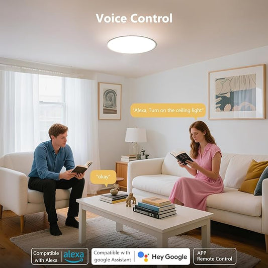 Smart Ceiling Light Replacement Kit, RGB LED Ceiling Light Retrofit Kit, 2400LM, DIY Color, Compatible with Alexa, 2700K-6500K for Bedroom, Living Room, 9.25 Inch, 120V, ETL