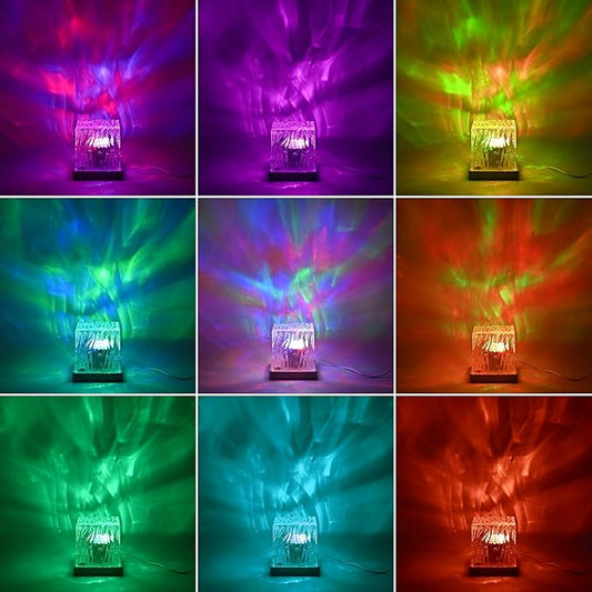 PWWJ Northern Lights Projector: 16 Color Gradual Changing Luminor Cube Lamp, This Crystal lamp Serves as Both Ocean Wave Projector and Galaxy Grojector, Making it Perfect for Bedroom and Party Decor