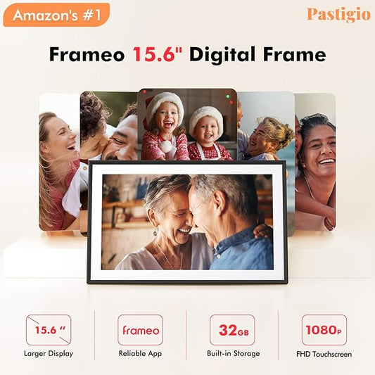 Digital Picture Frame WiFi, 15.6 Inch Frameo Digital Photo Frame, 32GB Memory, 1920*1080 IPS HD Touch Screen, Auto-Rotate, Share Pictures Video Instantly, Gift for Mom, Wedding, Birthday, Anniversary