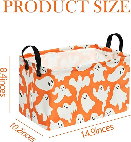 Ghost Halloween Party Basket, Collapsible Gift Storage Container for Kids' Toys and Clothes, Cute Organizer Box