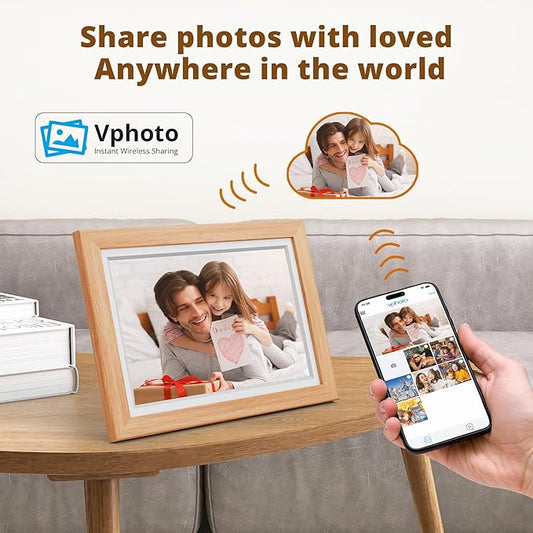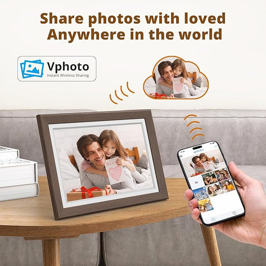 Dragon Touch Digital Picture Frame WiFi 10 inch IPS Touch Screen Digital Photo Frame Display, 32GB Storage, Auto-Rotate, Share Photos via App, Email, Cloud, Classic 10 Brown, PUUDUU