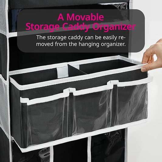 Over Door Organizer with 4 Large Capacity Pockets, Heavy Duty Hanging Organizer Storage for Closet Bathroom Nursery Bedroom Dorm, Toys Cosmetics Sundries and Baby Essentials, Black