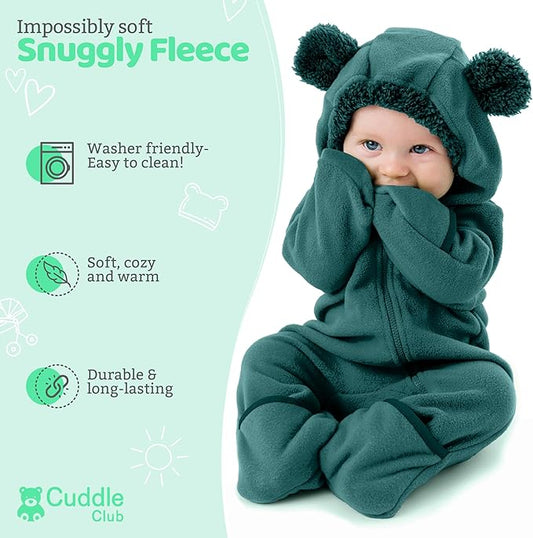 Cuddle Club Fleece Baby Bunting Bodysuit with Hood, Convertible Mittens & Booties, Car Seat Friendly, Soft & Warm, Easy Zip