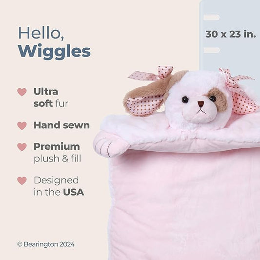 Bearington Baby Wiggles Tummy Time Mat, 30 x 23 Inch Pink Puppy Dog Plush Stuffed Animal Baby Mat Blanket - Puppy Blanket
