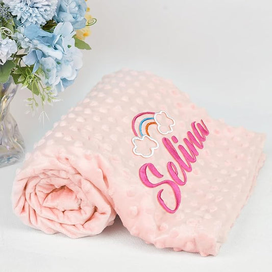 Personalized Baby Blanket with Embroidered Name, Custom Blanket for Girls Boys, Personalized Christmas Birthday for Girls Boys Newborn Essentials (Cherry-Pink)