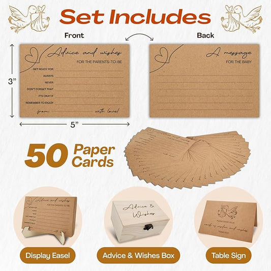 Baby Shower Advice Cards for Parents To Be - 50 pcs Double Sided Wishes Cards with Box - Wishes for Baby Shower Decoration Fun Baby Time Capsule Prediction Game Ideas Well Wishes for Mommy To Be