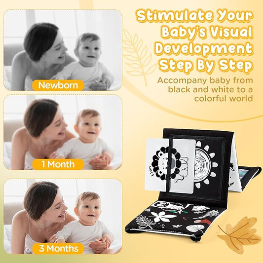 URMYWO Tummy Time Mirror Toys, High Contrast Black and White Baby Toys for Newborn, Baby Boy Girl Gifts, Visual Stimulation Learning Activity Cards, Soft Baby Book, Montessori Infant Toys 0-12 Months