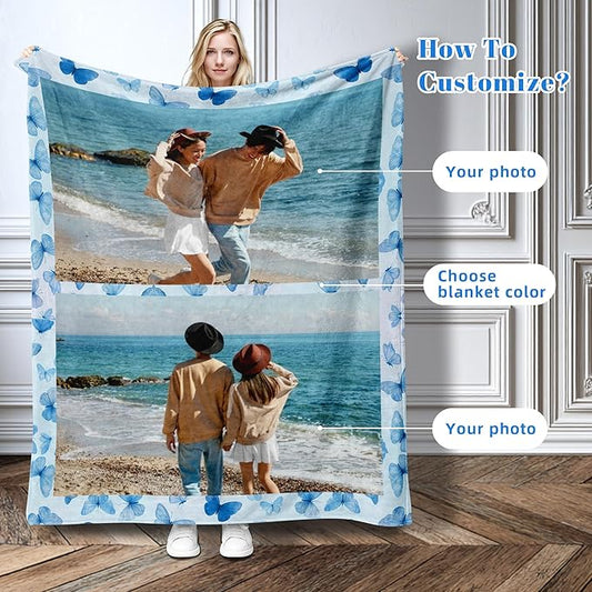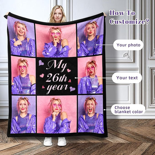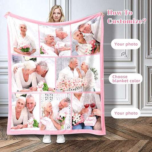 Custom Personalized 9 Photo Collage Blanket Thow Gifts with Text, Customized Pictures Blankets Gift for Christmas Birthday Thanksgiving Adults Kids Dad Mom Girlfriend Boyfriend (8 Myself)