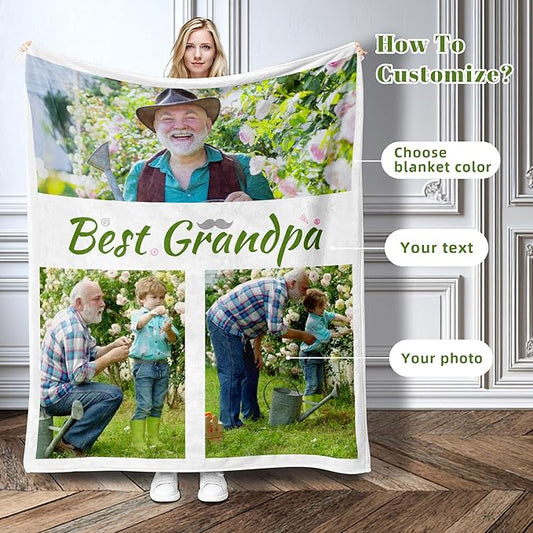 Custom Personalized 9 Photo Collage Blanket Thow Gifts with Text, Customized Pictures Blankets Gift for Christmas Birthday Thanksgiving Adults Kids Dad Mom Girlfriend Boyfriend (3 Grid Grandpa)