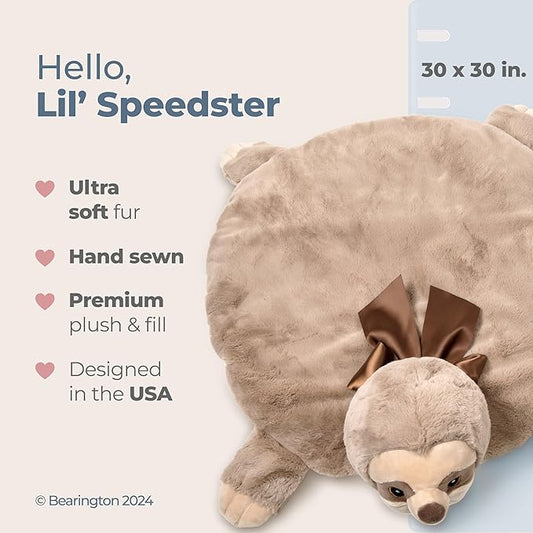 Bearington Collection Sloth Plush Tummy Time Mat - 30 x 30 in Lil’ Speedster Quilted Velour - Newborn Baby Sloth Blanket & Machine Washable