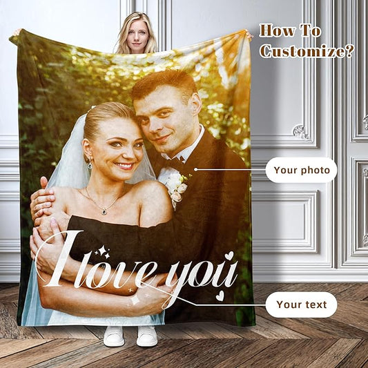 Custom Personalized 9 Photo Collage Blanket Thow Gifts with Text, Customized Pictures Blankets Gift for Christmas Birthday Thanksgiving Adults Kids Dad Mom Girlfriend Boyfriend (4 Wedding)