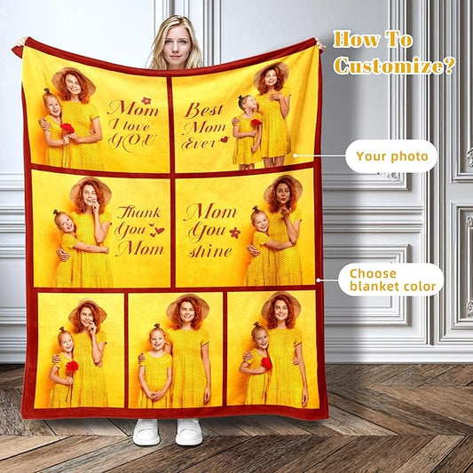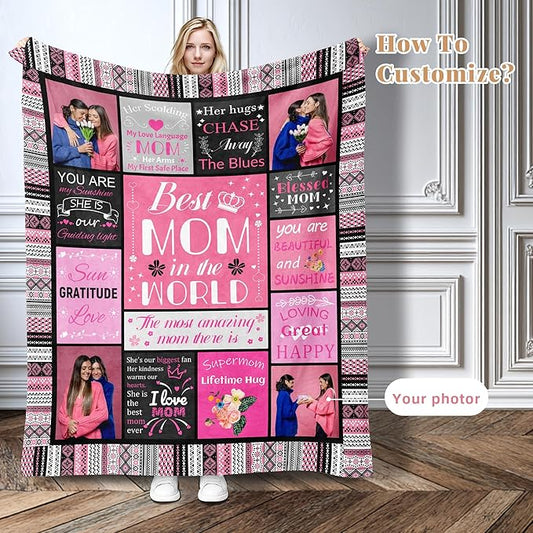 Personalized Mothers Day Birthday for Mom Custom Throw Blanket with Pictures, Customized Photo Blankets Gift for Mom Women Grandma Wife from Daughter Son Kids Husband(mom Grid)