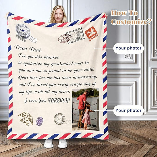 Personalized Fathers Day Birthday for Dad Custom Throw Blanket with Pictures, Customized Photo Blankets Gift for Daddy Men Grandpa Husband from Daughter Son Kids Wife (dad Letter)