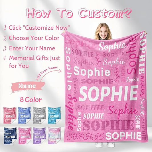 Personalized Baby Name Blanket, Custom Blankets and Throws with Name for Kids Girls Boys, Customized Toddler Blanket Gifts for Christmas Birthday Baby Shower (Name Text)
