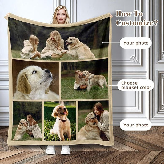 Custom Personalized 9 Photo Collage Blanket Thow Gifts with Text, Customized Pictures Blankets Gift for Christmas Birthday Thanksgiving Adults Kids Dad Mom Girlfriend Boyfriend (6 Dog)